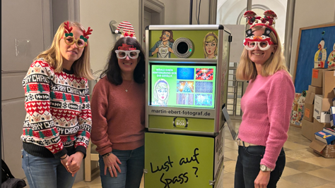 Mithilfe verschiedener weihnachtlicher Accessoires konnten sich die Besucher und Besucherinnen dekorieren und dann in der Fotobox ein lustiges Foto machen – eine tolle Grußkarte zu Weihnachten oder einfach als schöne Erinnerung an den Weihnachtsmarktbesuch.